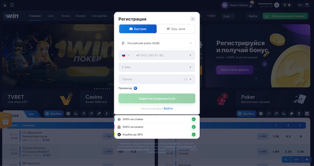Вход на платформу 1 вин предельно прост. Для этого вам нужно всего лишь зарегистрироваться или авторизоваться, если у вас уже есть аккаунт. При регистрации система попросит указать минимальный набор данных, после чего вы сразу сможете приступить к игре.